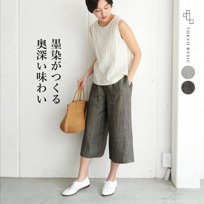 ガウチョパンツ コーデ 40代 50代 7分丈 墨染め ジャパンリネン100 ワイド クロップドパンツ 日本製 So 05 01 Tokyobasic 通販 Yahoo ショッピング